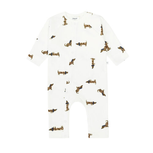 Combinaison courte pour enfant – coton bio, chien beige (Lassig)