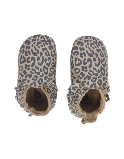 Chaussons en cuir soft soles – Mocassin Imprimé Léopard Doré (Bobux)