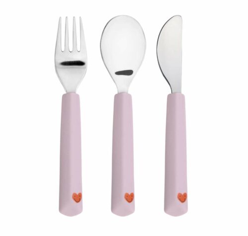 Couverts enfants (Fourchette, Cuillère, Couteau) – Happy Rascals, Cœur (Lassig)