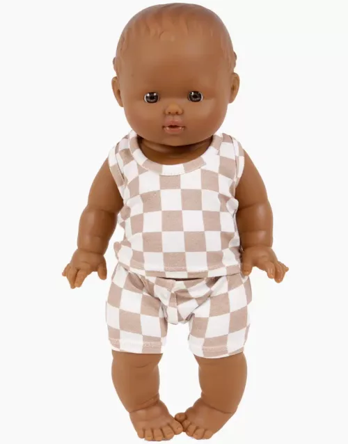 Léon et son ensemble Marcel en jersey damiers (Minikane)